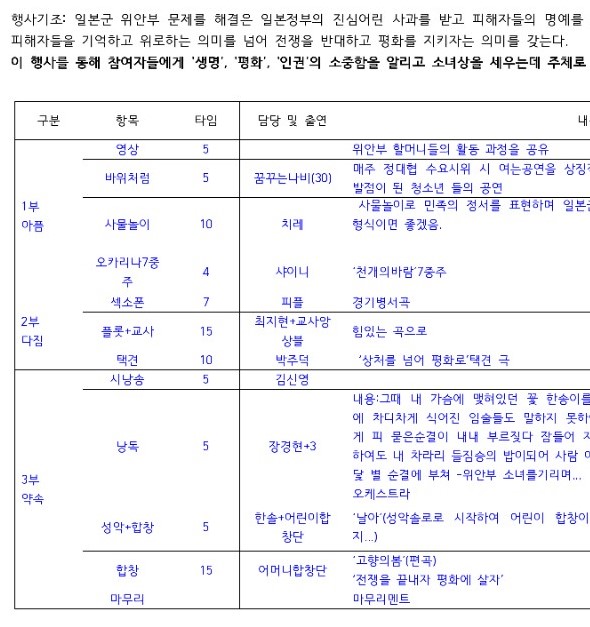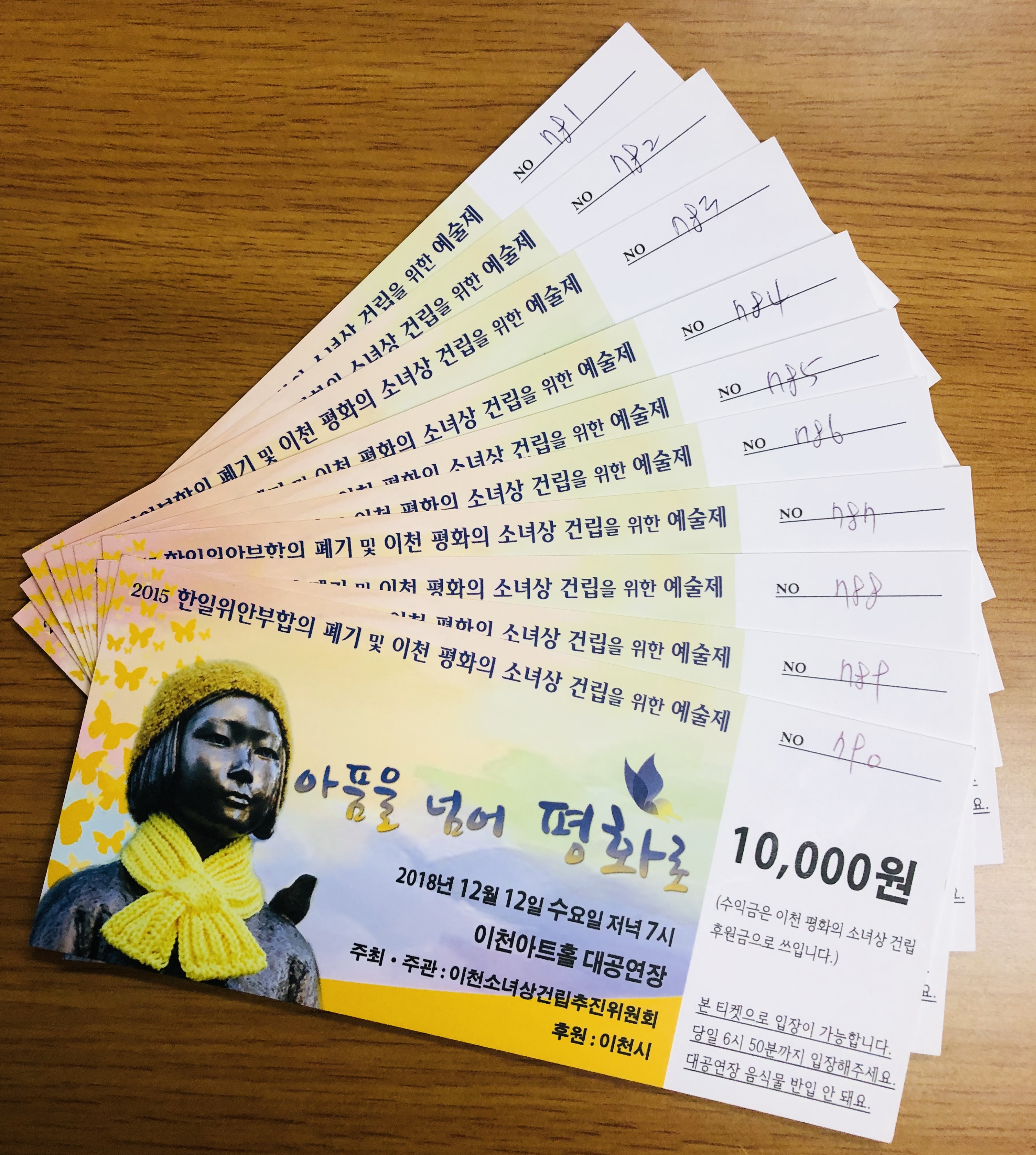 12월 12일 수요일 오후 7시에 이천아트홀에서 '평화의 소녀상 건립을위한 예술제' 가 있습니다.
