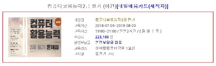 컴퓨터활용능력 필기시험 대비반 수업이 2018. 7. 9.(월) 시작되었습니다.