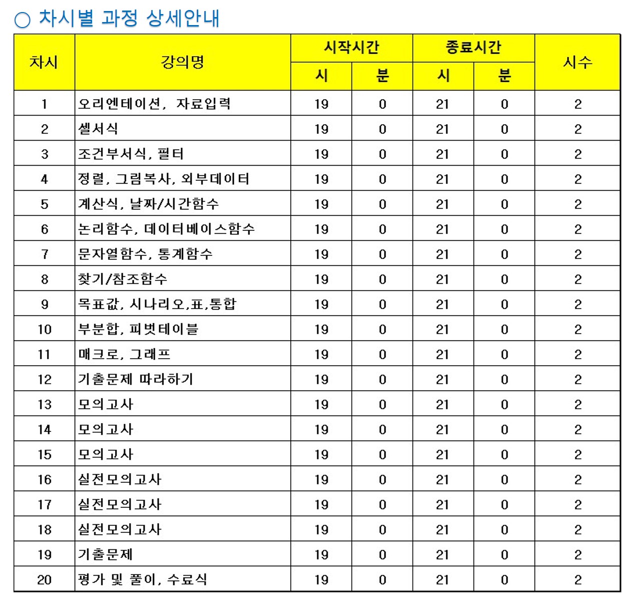 2) 필기시험대비 과정은 별도이며, 본 과정은 실기시험 대비 과정 임.