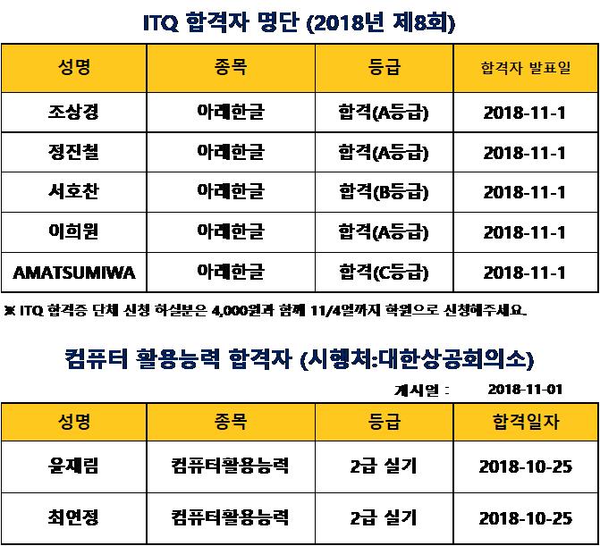 ITQ합격자 발표 (2018-11-1)