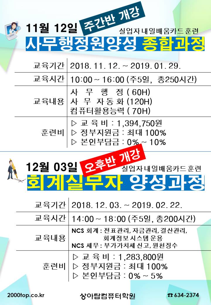 사무행정원양성 종합과정, 회계사무원 양성과정 개강안내