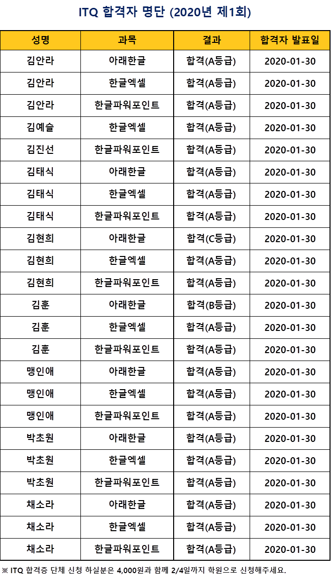 2020년 제1회 ITQ합격자 발표 (2020.1.30.)