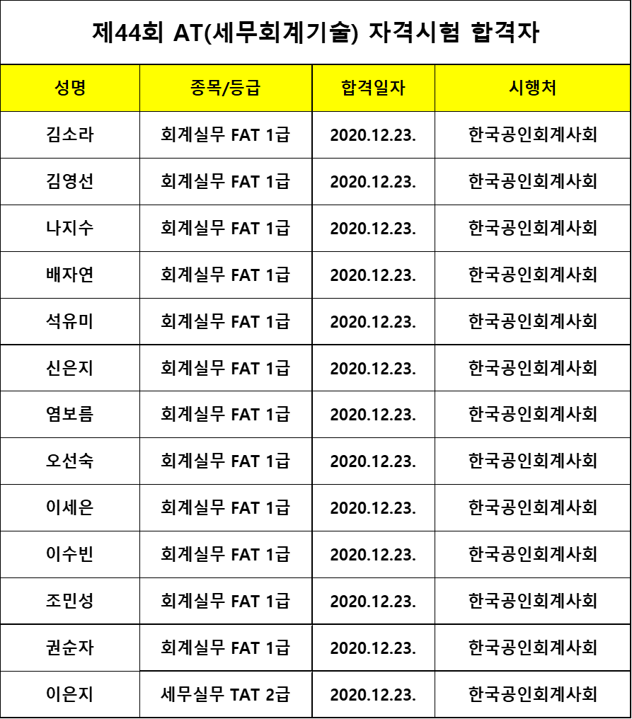 제44회 AT 자격시험 합격자