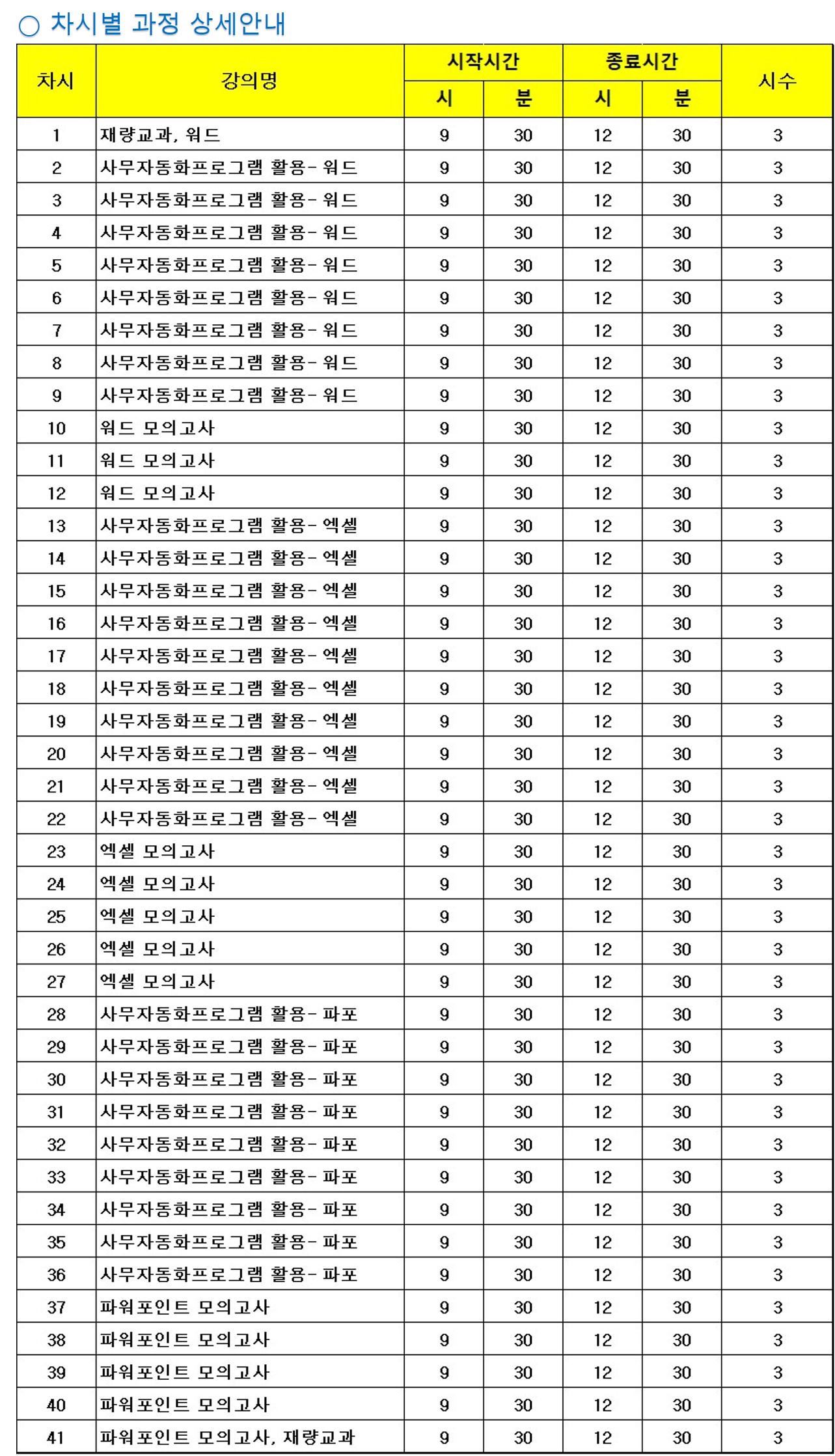 ○ ITQ 엑셀 A등급 : 45 시간